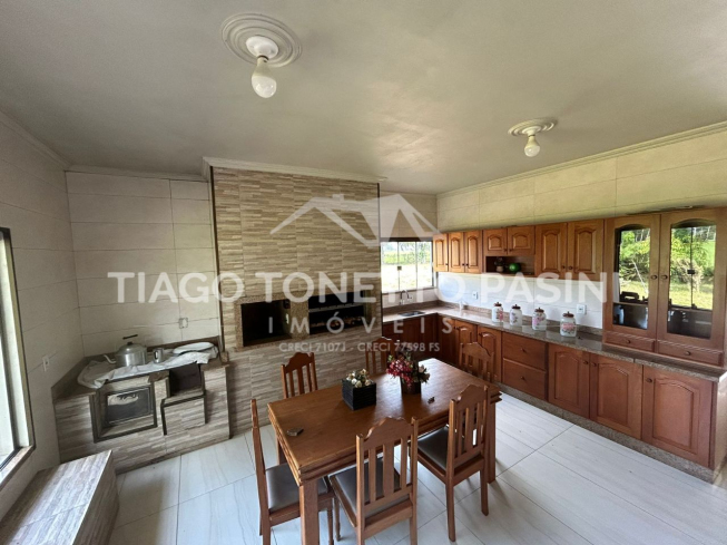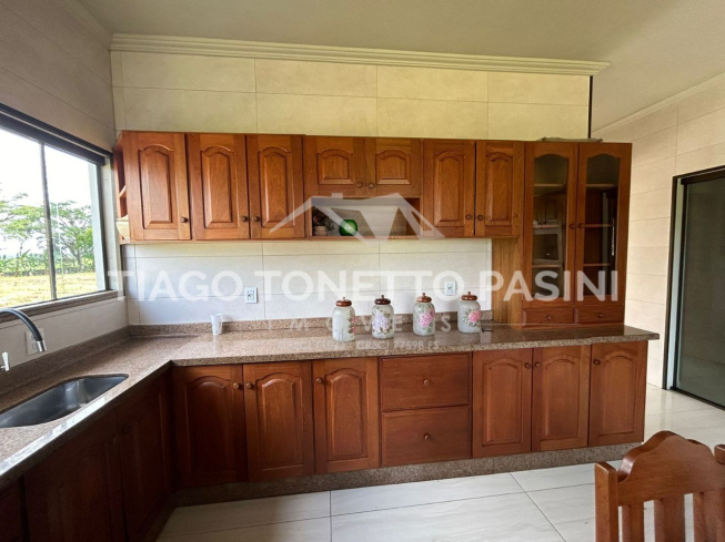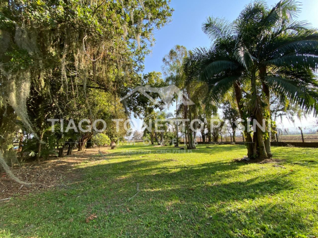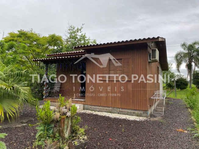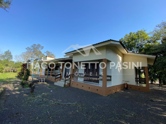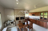 O imóvel conta ainda com uma segunda casa em madeira no terreno, ampliando as possibilidades de uso para moradia, hóspedes ou apoio rural.